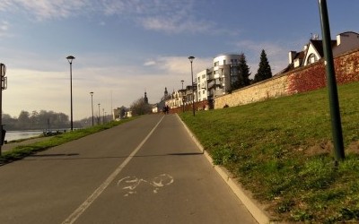 Do Krakowa poszło w zasadzie dość łatwo, pojechałem do Podgrabia, tam wskoczyłem na wał, dojechałem do Grabia. Dalej drogą, bo na tym odcinku WTR nie istnieje i chyba szybko nie powstanie, dojechałem do mostu Wandy, przekroczyłem Wisłę i wjechałem na WTR, która dotarłem pod Plazę. Tu pierwsza trudność, trzeba wejść po schodach, dalej przez park i wzdłuż Wisły aż pod Wawel. Pod Wawelem zwężka i przez chwili nie ma drogi dla rowerów, ale po kilkuset metrach znowu jest i tak dojechałem aż do Salwatoru, tu niestety droga po wale się kończy i trzeba wjechać na drogę, którą trzeba dotrzeć do mostu, gdzie ścieżka ponownie się zaczyna.