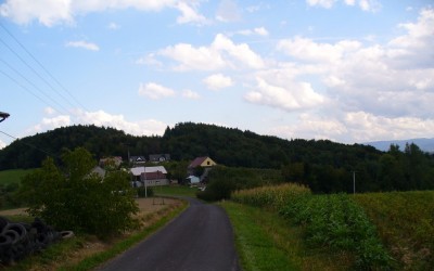 Następnie pędzimy do Sobolowa, czeka nas podjazd szosowy pod Zonię, jak zwykle na tej górze jest ciężko, nawet na dość lekkich górskich przełożenia. W końcu jednak zdobywamy szczyt i rozpoczynamy terenowy zjazd do Cichawki na którym znajduję się pkt 9 - skrzyżowanie. Po kilku minutach podbijamy punkt i zjeżdżamy dalej przez Cichawkę do Wieruszyc, dalej do drogi na Łapanów, odbijamy na Leszczyny, a po kilku minutach skręcamy na Trzcianę, jadąc już coraz wyraźniej pod górę.