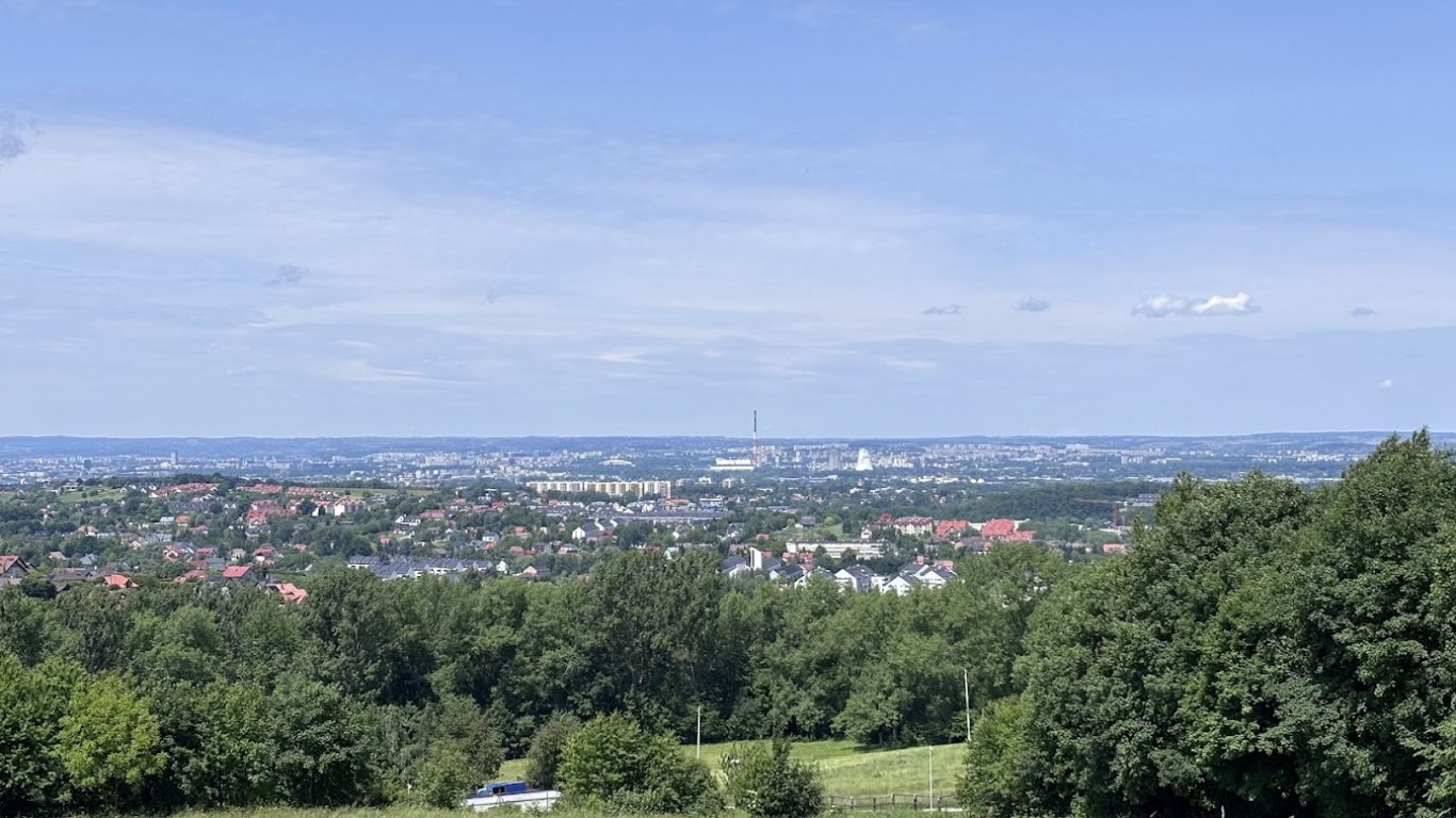 Podjazd jechałem już wielokrotnie, ale na elektryku to bajka:) poszło szybko i sprawie. Podjazd do mety wyścigu to 4 km pod kościółek na osiedlu Chełm - gdzie finiszowałem punktualnie o 15:00, ja jednak tu się nie zatrzymałem, tylko od razu ruszyłem na szczyt. Na szczycie kolejny postój na podziwianie widoków, a następnie powrót na metę, gdzie oczekiwałem na finisz wyścigu.