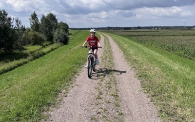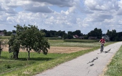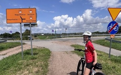 Emilka poradziła sobie bardzo dobrze, pewne problemy sprawiały jej jedynie odcinki jechane pod wiatr, ale na szczęście tego dnia wiatr raczej nam sprzyjał.