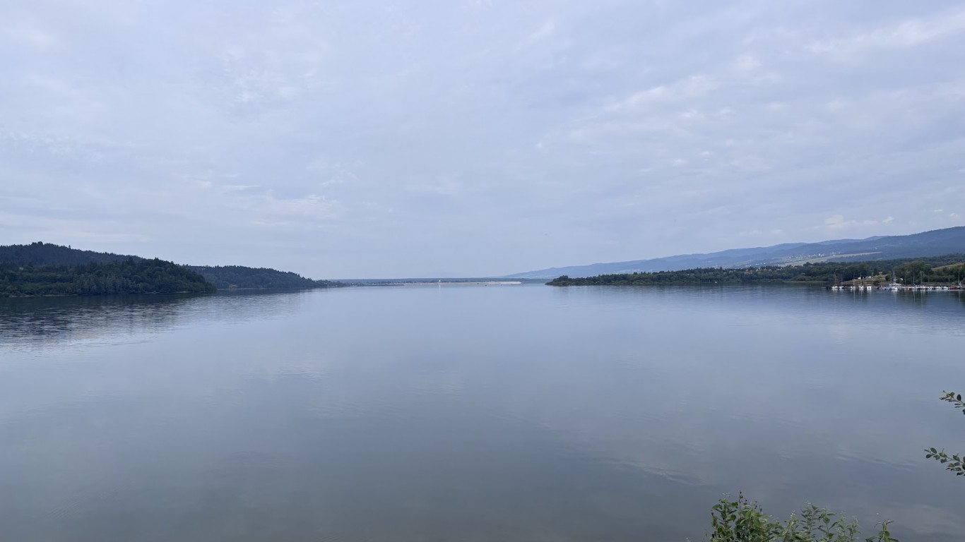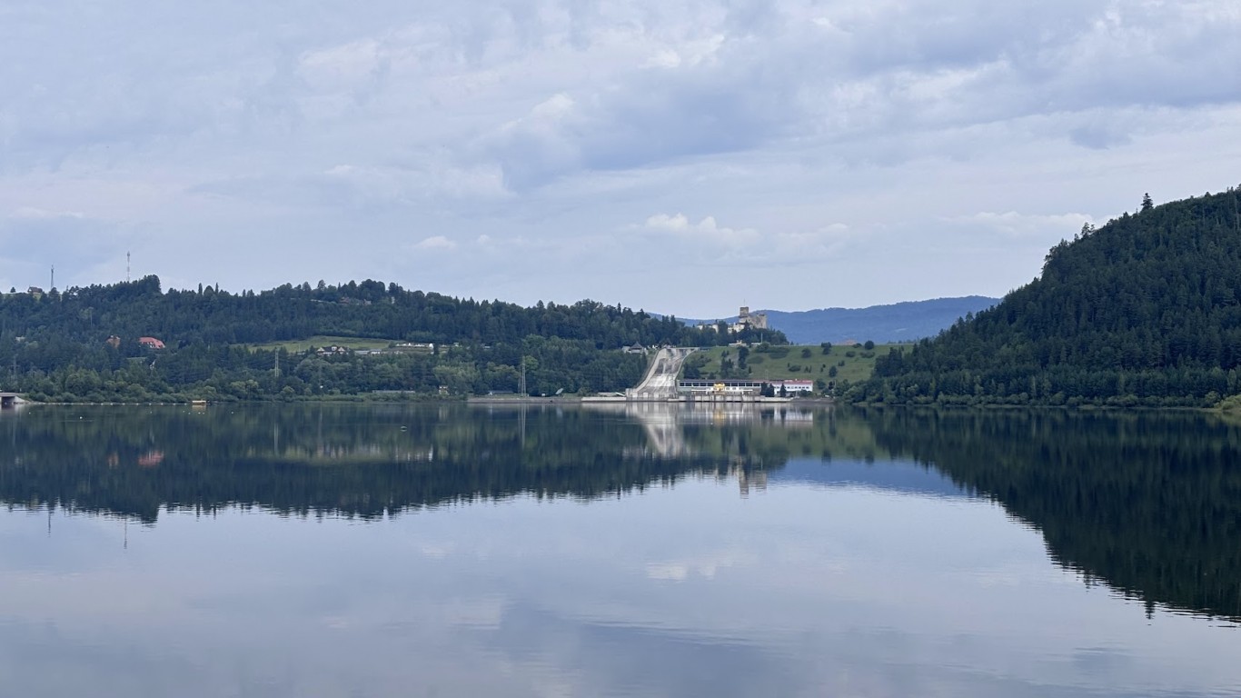 Wyjazd rozpocząłem w Dębnie przy szlaku Velo Dunajec (podobnie jak w 2021 r.), tym razem jednak postanowiłem dojechać do Niedzicy wschodnim brzegiem jeziora, czyli po Velo Czorsztyn, którym jeszcze do tej pory nie jechałem.