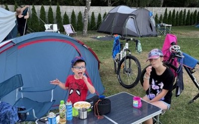 Jak co roku pojechałem z córką na biwak, w tym roku jednak na biwaku zadebiutował mój syn Kacper. Spędziliśmy 3 dni w ośrodku Riviera Camp w Radłowie, a drugiego dnia pobytu pojechaliśmy na wycieczkę rowerową do Borzęcina i Dołęgi.