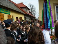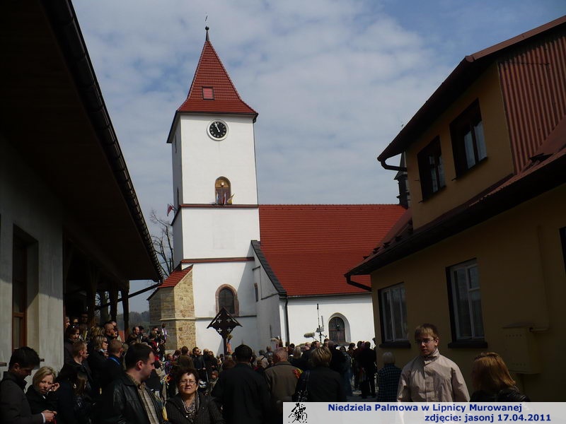 Po chwili ruszyłem przez Leksandrową do Lipnicy Murowanej. W dniu dzisiejszym ruch na tej drodze jak na autostradzie, więc jazda nie zbyt przyjemna. Podjazdy ciężkie, więc najlżejsze tryby cały czas użyciu. Na miejsce dojechałem około godziny 10:20. Na rynku w Lipnicy tłumy, stanąłem sobie spokojnie w rogu rynku, porobiłem zdjęcia i zaczekałem na poświęcenie palm w którym wziął udział prezydent Komorowski - widać go na kilku zdjęciach. Potem z trudem opuściłem rynek i udałem się pod Pałac Ledóchowskich, którego jakoś nie miałem okazji do tej pory odwiedzić podczas moich wizyt w Lipnicy. Chciałem jeszcze sfotografować kościół św. Leonarda i cmentarz z okresu I wojny, ale na teren nie wpuściła mnie policja, która przygotowywała grunt pod zwiedzanie zabytkowego kościoła przez prezydenta.