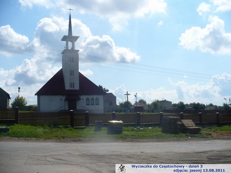 Pod ruinami zamku Olsztyn zrobiliśmy dłuższy postój połączony ze zwiedzaniem. Żeby wejść na plac trzeba kupić niestety bilet, ale warto to zrobić - widoki, ze wzgórza na którym położony jest zamek są przepiękne. W oddali widać Częstochowę i Jasną Górę - ten fakt napełnił nas sporym optymizmem. Wręcz odwrotnie działała na nas pogoda, która zaczęła się psuć. Po sesji fotograficznej w ruinach, ruszyliśmy, więc szybko dalej przez wioskę Kusięta dojechaliśmy na przedmieścia Częstochowy. Jednak od znaku Częstochowa do Jasnej Góry trzeba pokonać jeszcze dobre 10 km, zanim dojechaliśmy na Aleję Najświętszej Marii Panny (około godziny 14:00) na niebie zaczęły pojawiać się błyskawice - zaczęliśmy więc szybko szukać noclegu. Były z tym pewne problemy, więc po paru minutach zdołał nas dopaść deszcz. Ostatecznie znaleźliśmy pokój w odległym o 2 km od Jasnej Góry motelu na ulicy Krótkiej.