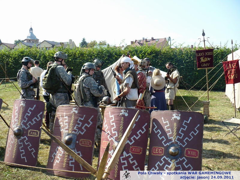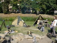 Do Niepołomic już po raz kolejny ściągnęły grupy pasjonatów historii wojskowości. W obozach wojskowych rozmieszczonych wokół zamku i przy Izbie Regionalnej można było zobaczyć grupy żołnierzy z różnych epok - od czasów rzymskich przez rycerzy średniowiecznych, żołnierzy Napoleona, siły Północy z okresu Wojny Secesyjnej po żołnierzy z czasów I i II wojny światowej oraz współczesnych komandosów amerykańskich i brytyjskich. Na zamku prowadzono natomiast rozgrywki WAR GAMENINGOWE - na planszach z rozstawionymi figurkach. Wśród atrakcji wypatrzyłem też dwie perełki interesujące dla rowerzystów: po pierwsze posterunek policji z okresu między wojennego wyposażony w rowery patrolowe przystosowane do przewozu broni marki Łucznik, po drugie składany rower, który był na wyposażeniu jednego z oddziałów stacjonujących za Izbą Regionalną.