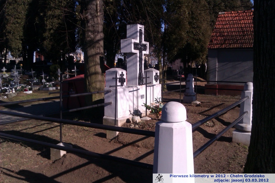 Na szczycie byłem mocno zmęczony, zrobiłem więc przerwę i kilka fotek - niestety komórką bo mój podręczny Panasonic LZ7 padł mi na dobre. W zimie kupiłem co prawda lustrzankę, ale ciężko ją brać na rower. W przerwie napompowałem porządnie rower i postanowiłem jeszcze jechać do koryta Raby (z 265 metrów na szczycie Grodziska, do 200 przy Rabie) znów kilka fotek i podjazd pod kościół i dalej pod cmentarz w Chełmie. Tu znowu zrobiłem małą przerwę i odwiedziłem cmentarz wojenny z okresu I wojny nr 334. W tym roku mam założenie odwiedzić ponownie wszystkie cmentarze z okresu I wojny na terenie okręgu IX - jest ich w sumie 46, pierwszy już mam za sobą.