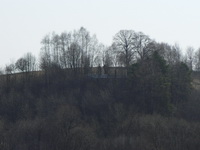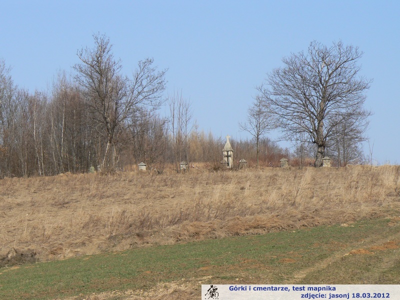Cała ta sytuacja trochę mnie zdenerwowała, straciłem też sporo czasu, nie pojechałem więc od razu na cmentarz 337, tylko skierowałem się w drugą stronę do Nieprześni. Droga którą jechałem po raz pierwszy kończy się skrzyżowaniem z drogą Zawada - Sobolów na granicy Nieprześni i Sobolowa(powiatu Bocheńskiego i Łapanowskiego) na skrzyżowaniu stoi oryginalny słup informacyjny kierujący na cmentarz w wojenny w Grabinie ja skręciłem w lewo do Nieprześni - na cmentarzu nr 338 w Nieprześni byłem do tej pory tylko raz i to już dość dawno temu, cmentarzem opiekuje się Pani Salawa, przy której domu prawie 100 lat temu odbyło się krwawe starcie na bagnety w którym zginęli żołnierze pochowani na cmentarzu. Drzewa jeszcze się nie zazieleniły, więc znajdujący się na wzgórzu cmentarz wypatrzyłem już z drogi, przy domu Pani Salawy, stoi współczesny znak wskazujący drogę przez pola do cmentarza, wyszedłem na wzniesienie i zrobiłem fotki, wypatrzyłem też drogę prowadzącą w kierunku szczytu Zonii, będę musiał już kiedyś spróbować, ale to pewnie będzie ciężki podjazd, więc wcześniej trzeba potrenować. Z Nieprześni wróciłem się do Grabiny, na cmentarz 337, znów kilka fotek i przez Buczynę i Nieszkowice Małe wróciłem do Gierczyc a stamtąd drogą 967 do Łapczycy. W czasie całej wycieczki porobiłem też kilka zdjęć wzgórza Czyżyczka z różnych perspektyw - próbowałem też zbliżeń na zoomie 12 - w sumie wyszły nie najgorzej, widać nawet krzyż z glorią na szczycie.