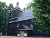 Postanowiłem sprawdzić czy na rowerze crossowym jestem w stanie podjechać pod górę z odcinkami o średnim nachyleniu powyżej 20%. W lutowym numerze Rowertouru znalazłem odpis dwóch bardzo stromych podjazdów w okolicy Limanowej: z Łososiny Górnej na Pasierbiecką Górę (10 nr w rankingu najtrudniejszych podjazdów szosowych; długość 5 km; różnica wzniesień 388 m; średnie nachylenie 7,8%; śr. nachylenie na 1 km 15,9%; śr. nachylenie na 100 m 27%;) oraz Makowica-Kamionna szosą z Młynnego (12 nr w rankingu najtrudniejszych podjazdów szosowych; długość 3,93 km; różnica wzniesień 390 m; średnie nachylenie 9,9%; śr. nachylenie na 1 km 14,5%; śr. nachylenie na 100 m 27%;). Oba podjazd są bardzo strome i na obu maksymalne nachylenie sięga 27% czyli dokładnie tyle samo ile jest w Gliczarowie Górnym przez który będzie przejeżdżał Tour de Pologne Amatorów w którym zamierzam wziąć udział. Na trening wybrałem podjazd po Pasierbiecką Górę. Do Łososiny Górnej pojechałem samochodem, zaparkowałem pod zabytkowym, drewnianym kościołem (który postanowiłem oglądać po powrocie z wycieczki) i ruszyłem na podjazd. Pierwsze metry to dojazd do podjazdu, kilkaset metrów od kościoła jest skręt w prawo i duża tablica informująca o drodze do Sanktuarium Maryjnego w Pasierbcu..