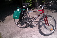 Przez 10 dni nie jeździłem na rowerze, w sobotę wreszcie miałem czas, więc z samego rana pojechałem do Niepołomic. Trasa jak zwykle przez Chełm, Targowisko, Kłaj (wiadukt nad autostradą już otwarty), Szarów i ścieżką rowerową wzdłuż drogi nr 75 do Niepołomic na Rynek na kawę do mojego kolegi. Odcinek ten pokonałem w czasie 43 minut, zatrzymałem się raz - zrobić fotki na wyremontowanym parkingu leśnym przy ścieżce rowerowej. Po przerwie na kawę pojechałem do domu moich rodziców zobaczyć sakwy crosso, które dzień wcześniej przyszły kurierem. W piątek byłem też na zakupach, bo wybieram się wraz z żoną na rowerowe wakacje na Mazury. Kupiłem w Niepołomicach opony Kenda 28x1,75 i to właśnie na nich jechałem na dzisiejszą wycieczkę - opory toczenia są większe, ale za to zdecydowanie łatwiej jedzie się po drogach szutrowych (pod sakwy będą idealne). W piątek byliśmy też w Decathlonie gdzie kupiliśmy kilka potrzebnych na wyprawę drobiazgów w tym kask Bell dla mojej żony (zdjęcie 1).