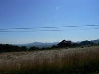 Na dalszą trasę ruszyliśmy dopiero około godziny 15:00 w stronę Raby Wyżnej. Pierwsze kilometry w miarę łatwe choć już lekko pod górkę. Poważny podjazd zaczął się w Pieniążkowicach przed mami czekała Przełęcz Pieniążkowicka - 709 m npm. Podjazd dość ciężki choć moim zdaniem łatwiejszy niż góra zaczynająca się w Wiśniowej. Zasadniczy podjazd na przełęcz to jakieś 5,2 km i 179 metrów przewyższenia, na górę wyjechałem pierwszy, prawie przez cały czas miałem za plecami Grześka, ale jakoś musiał stanąć przed szczytem gdyż na szczycie za mną pojawił się Krzysiek, potem Wojtek. Na przełęczy zaczekaliśmy na wszystkich i rozpoczęliśmy szalony zjazd w stronę Czarnego Dunajca. Po zjeździe wyjechaliśmy na równinę, w koło łąki, przed nami jak na dłoni Tatry. Jechałem z przodu wraz z Wojtkiem, który narzucił bardzo mocne tempo i tak dojechaliśmy sobie do Czarnego Dunajca, gdzie poczekaliśmy na resztę grupy. Po paru minutach dojechali pozostali uczestnicy, zrobiliśmy jeszcze krótką przerwę i już tempem dość wolnym pokonaliśmy ostatnie 9 km do Chochołowa, gdzie zaplanowany był pierwszy nocleg - kwatera fajna i tania:)