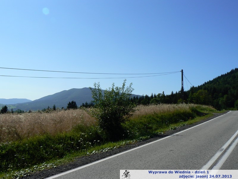 Wstałem o 6:00 i mniej więcej o 6:55 wyjechałem z Łapczycy drogą w kierunku Gdowa, niestety nie była to droga przyjemna, ruch był duży i jechało dużo tirów. Na szczęście po przejechaniu mniej więcej 14 km, skręciłem w boczną drogę i po przejechaniu przez Gdów skręciłem na Stadniki. Droga do Dobczyc przez Stadniki już spokojna i o godzinie 8:00 po przejechaniu mniej więcej 23 km dojechałem do drogi 964 na Kasinę Wielką. Na początek miałem lekki zjazd do Czasławia, gdzie niestety miałem nieprzyjemną sytuację, jakaś baba jadąca z przeciwka białym Fiatem Panda zaczęła wyprzedzać dwa wolniej jadące samochody w ogóle nie przejmując się tym, że ja jadę. Dodam tylko, że wyprzedzała na podwójnej ciągłej i na przejściu dla pieszych, ja nie bardzo miałem gdzie zjechać bo był wysoki krawężnik, baba przemknęła obok mnie moim pasem z dużą prędkością. Trochę się zdenerwowałem, ale cóż jadę dalej, powoli też zacząłem piąć się do góry.