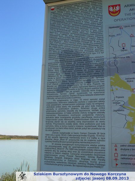Dobre 3 km męczę się na leśnej drodze o zmiennej nawierzchni, od solidnej ubitej ziemnej drogi, przez drogę wysypaną dużymi kamieniami po piasek. W między czasie na liczniku przeskakuję mi 60 km, cały czas jeszcze trzymam tempo. Z lasu wyjeżdżam niedaleko Wał-Rudy, brak dokładnej tabliczki skrętu i rezultacie jadę w lewo zamiast w prawo. Szybko dostrzegam błąd i zawracam. To właśnie w tym miejscu miałem zmodyfikować szlak do mojej wersji cmentarnej i popędzić asfaltem do Wał-Rudy. Jednak na szlaku zaledwie 1 km od szosy jest pomnik akcji III most. Decyduję się jechać go zobaczyć, muszę przejechać przeszło kilometr po drodze wokół żwirowni, jest piasek potem kamienie, potem znowu piasek, ale już po chwili jestem na miejscu. Pomnik ładny i przede wszystkim dobrze opisany, z tablic informacyjnych możemy się dowiedzieć wszystkiego o akcji III most.
