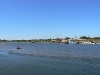 Tuż przed Gręboszowem szlak odbija na Wolę Gręboszowską pomijając centrum, to błąd na drodze za szlakiem nie ma nic ciekawego a centrum Gręboszowa jest całkiem ładne (co zobaczę w drodze powrotnej). Jadę drogą przez pola, w kierunku wschodnim znowu pod wiatr, w końcu dojeżdżam ponownie do drogi 973 a nią po jakimś kilometrze do promu na Wiśle w Borusowej (koszt - 1 zł). Przepływam przez rzekę i jestem już w województwie Świętokrzyskim, po chwili mijam też znak Nowy Korczyn. Jeszcze jakiś kilometr drogą krajową 79 i jestem w centrum miejscowości, czyli o celu mojej podróży. Na liczniku przejechane 110 km z domu i niecałe 109 spod zamku w Niepołomicach, jest godzina 13:26 (od wyruszenia z domu minęło 6 godzin).