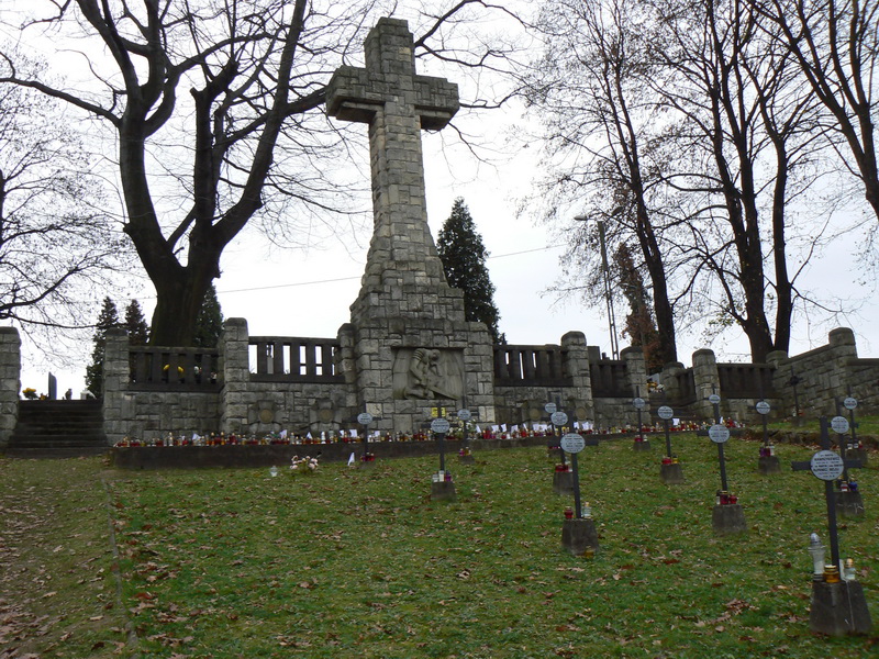 Przejechałem przez rynek w Bochni, minąłem Zamek Żupny gdzie podobno też jest kesz i pojechałem na cmentarz komunalny, a konkretnie pod kwaterę wojenną nr 314. W zasadzie miałem nie atakować tego punktu, 3 dzień listopada i do tego niedziela, to kiepski termin na szukanie na cmentarzach, szczególnie tak dużych ja ten w Bochni, w końcu jednak postanowiłem się rozejrzeć. Porobiłem fotki i chyba namierzyłem drzewo w którym schowany jest kesz, ale nie było szans na zajrzenie do skrzynki bez wzbudzenia podejrzeń, więc postanowiłem odpuścić. Początek keszowania więc kiepski 0:2.