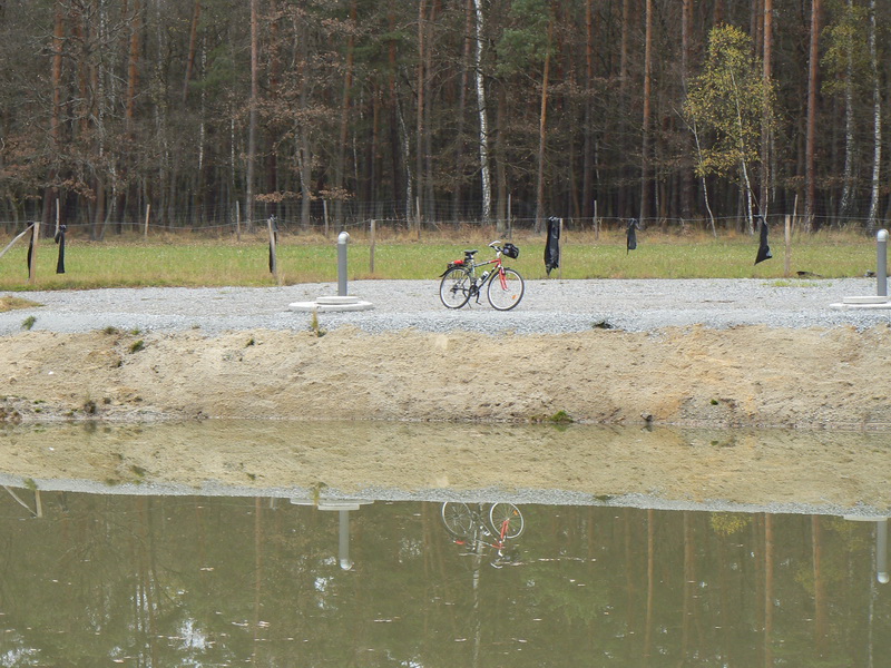 W zasadzie w tym momencie wyczerpałem mój plan keszowania na dziś - wynik 3:2 dla mnie (punkt na cmentarzu był już dodatkowy), ale jadąc w kierunku Stanisławic, postanowiłem poszukać jeszcze kesza opisanego jako \"kukułcze jajo\" - mój GPS sugerował, że jest blisko. W tym celu skręciłem z asfaltówki w szutrówkę, dojechałem do równoległej szutrówki i znów skręciłem w kierunku asfaltu. Dobrze utwardzoną drogą dojechałem do punktu czerpania wody, nad którym chyba jeszcze nigdy nie byłem. Ostatnimi czasy takie małe jeziorka w puszczy zostały wyposażone w sprzęt do szybkiego poboru wody przez wozy straży pożarnej, dość dokładnie utwardzono też drogi dojazdowe do nich.