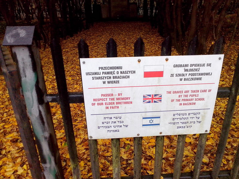 Moim celem jest cmentarz żydowski w Baczkowie, niestety zamiast jechać dalej moją wygodną szutrówką, postanawiam przebić się ścieżką do Drogi Złodziejskiej. Początek jest zachęcający, ścieżka do prawda już nie tak dobrze utwardzona, ale szeroka i można po nie jechać, niestety w pewnym momencie ścieżka najpierw się zwęża, a po chwili zamienia się w błotną masakrę. Jakoś bokiem udaje mi się przejść i po stromym podejściu, dochodzę do Drogi Złodziejskiej. Dalej jadę w miarę bez problemu, choć dość wolno, bo droga jest pełna piasku. Pod cmentarzem chwila przerwy i kilka fotek, a następnie jadę dalej i z Puszczy wyjeżdżam w Proszówkach.